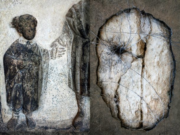 She doesn’t work according to a plan. “If I do, it goes completely wrong. I want to work from curiosity and surprise. I want to surprise myself.” Silence is essential to her, she says. “While traveling, when I’m working. I also work on weekends. Silence helps me a lot to explore my own world. I photograph in the same way as I collect materials: intuitively. I’m a beachcomber. In Florence I photographed a leaf on the street, a piece of a zebra crossing, a worn doorknob. My eye is drawn to it and I capture it. I store the photos in the archive. I go through them later. If an image touches me again, I start working with it.”