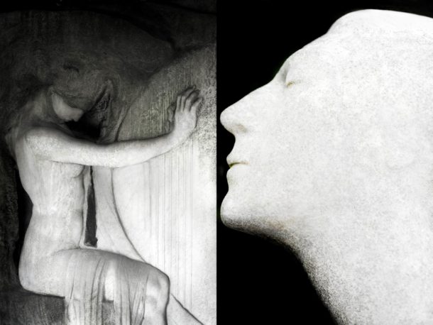 She has key works in every phase of her work. In the triptychs it is the first work in the series ‘The inner face’. In the diptychs it is also the first work. “The hand of the child, his deep desire for connection. In the spatial work ‘Pas de deux’, a work in which man dances with death.”