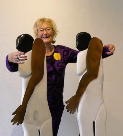 Sculptures by Mary Bezembinder are in public spaces, in private gardens and in homes. In the 50-plus flat in Rijswijk at ‘the Hump’ (de Bult), a sculpture of dancing people, with light lines, hangs in the entrance of one of the two flats.