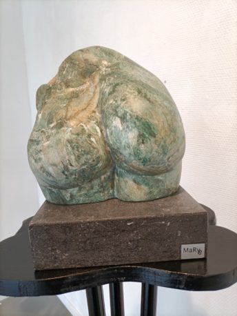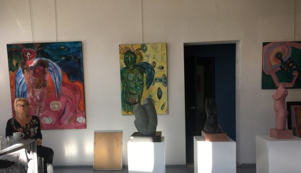 Inside the fairly large space is full of sculptures and paintings; more sculptures than paintings because Mary is primarily a sculptor, a sculptor of the female body. Mary: “I call it my female torsos. It was also on display at the Hague Art Circle. Sometimes it becomes abstract, because the stone asks for it, but usually it ends up as female torsos.”