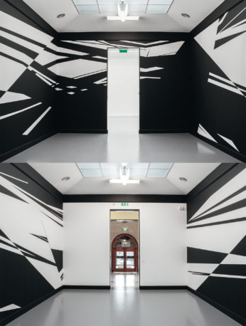 8 February – 12 April 2015, 9) ABERRATION, 2015, 23 x 0,4 x 7,8 m, mural / wallpaint,