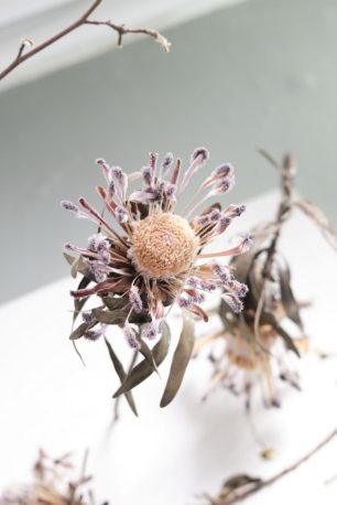 Her presentation had something earthy, especially because of the chosen colours and at the same time something light and that came from controlled brushstrokes on transparent glass plates. That was reinforced by dried flowers in various places.