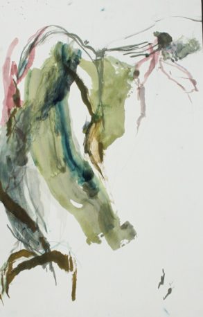 And in second place the glass works. “It is not only flat work, but also on top of each other, multi-dimensional. Working on glass is funny, it shines through, you have no back and you do have shadow.” The work on glass originated at the Rijksakademie when she started mixing ink on a glass plate. That glass came from the Rijksakademie walkway. Later she found other glass plates elsewhere, of a larger size.