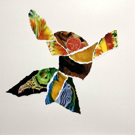 “I decided to make a deconstruction. With film (in 2023) and collages (in 2024). A rebellious, playful way to dissect imagination. I made something new in an abstract way. With pieces of painting, drawings and my photos in that area, photos from an image bank about Brazil and pieces of painting that I painted myself. The collages are named after an animal or fruit from that area. For example, as fruit species umbu and uxi and as animal species cockatoos, quatis and preas.”